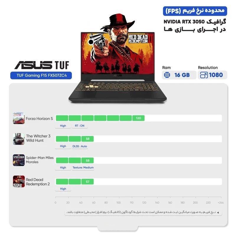 مدل TUF Gaming F15 FX507ZC4-HN009 لپ تاپ 15.6 اینچی این کمپانی بوده که صفحه نمایشی با رزولوشن 1920×1080 پیکسل دارد. وزن این لپ تاپ 2.2 کیلوگرم بوده و ابعاد آن 24.9 × 251 ×354 میلی‌متر است.